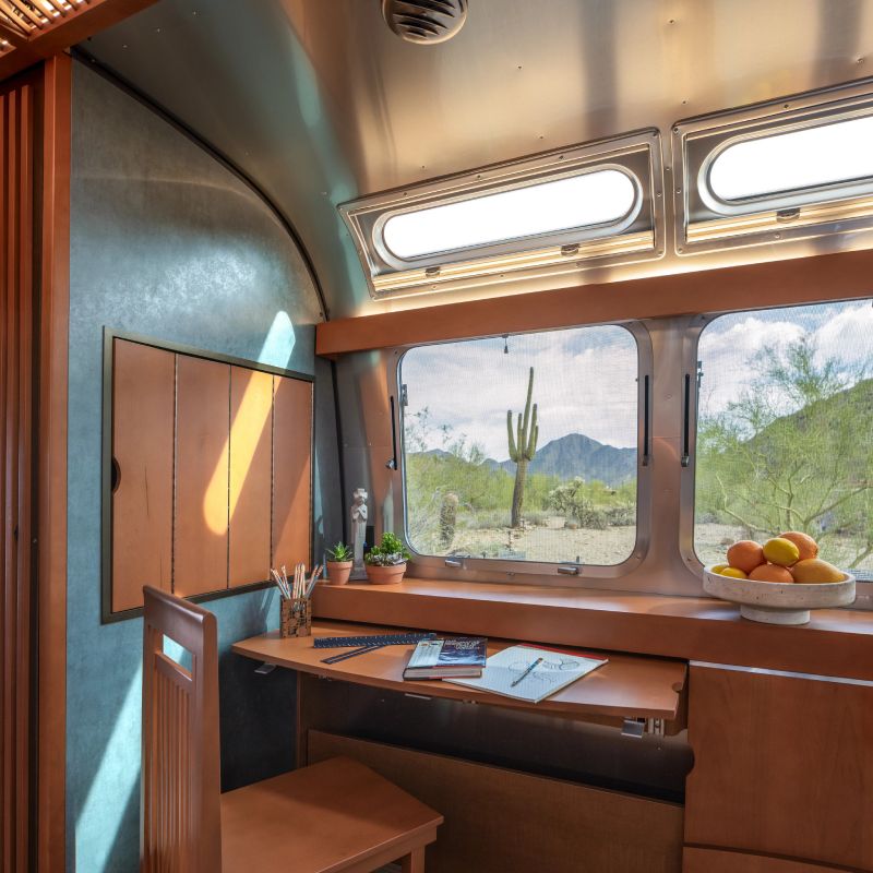 The 28-foot Airstream Usonian Limited Edition Travel Trailer is a tribute to two American design icons-Frank Lloyd Wright and Airstream. Merging Wright's organic architecture with Airstream's timeless form, this special edition features handcrafted touches like the elegant Gordon Leaf Pattern, convertible living spaces, and a Rear Hatch bedroom retreat. Only 200 units will be produced over two years, making this a rare opportunity to own a piece of design history.